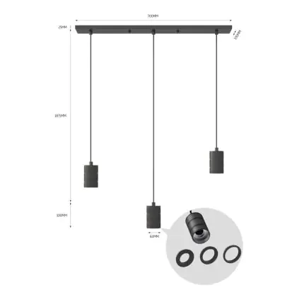 | Fabrikantnaam | Calex Retro pendant lamp with ceiling plate rectangular 10x70cm, black fitting 3xE27 (2 meter cord) | |