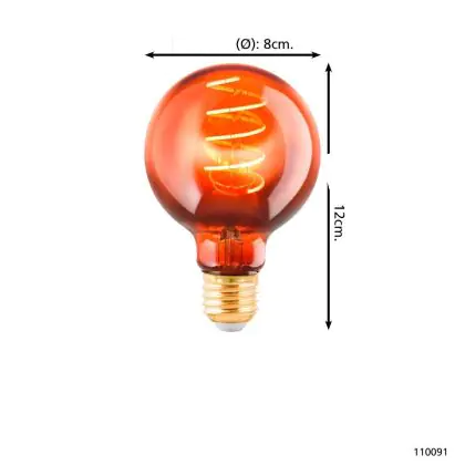 Eglo LED Globe E27 Filament Amber 4W 30lm - 820 Zeer Warm Wit | Dimbaar - Vervangt 15W