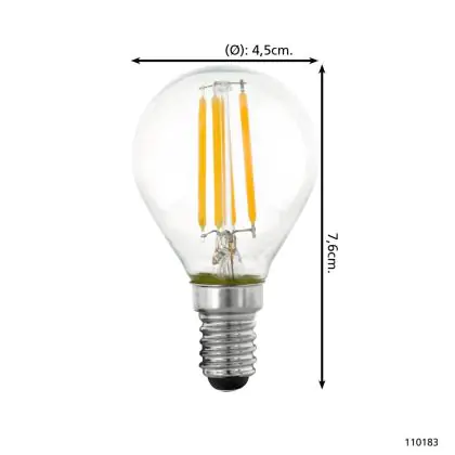 Eglo LED Kogel E14 Filament Helder 4.5W 470lm - 827 Zeer Warm Wit | Dimbaar - Vervangt 40W