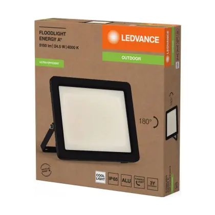 Ledvance LED Breedstraler Aluminium Zwart 24.5W 4600lm 100D - 840 Koel Wit | IP65 - Symmetrisch