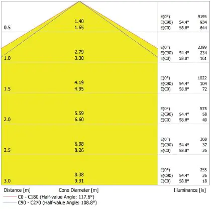 De lichtopbrengst (Lumen), geeft weer hoe krachtig het uitgestraalde licht is. Dit is belangrijk om te weten om de juiste sfeer te creëren. 0 tot 400 Lumen is bij uitstek geschikt voor accent- of sfeerverlichting. Een hoger aantal Lumen is, afhankelijk van de grootte van de ruimte, beter geschikt als ondersteunende- of basisverlichting. Heb je plafonds hoger dan 4 meter, dan is een lichtopbrengst van minimaal 8000lm aan te raden indien heldere verliching gewenst is (vb. in werkomgevingen).