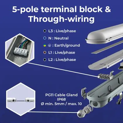 Noxion LED Waterdichte Montagebalk Poseidon V3.0 30W 3900/4200lm - 830-865 CCT | 120cm - Doorvoerbedrading (5x2.5mm2) - Dali Dimbaar