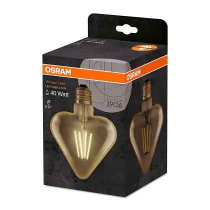 Osram Vintage 1906 LED E27 Heart Filament Goud 4.5W 470lm - 825 Zeer Warm Wit | Vervangt 40W
