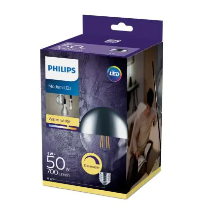 Philips Classic LED Globe E27 Filament Spiegel Helder 120mm 8W 700lm - 827 Zeer Warm Wit | Dimbaar - Vervangt 50W