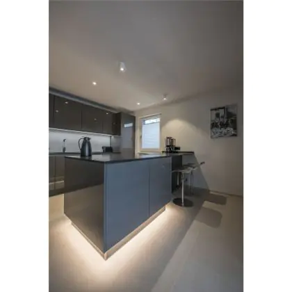De lichtopbrengst (Lumen), geeft weer hoe krachtig het uitgestraalde licht is. Dit is belangrijk om te weten om de juiste sfeer te creëren. 0 tot 400 Lumen is bij uitstek geschikt voor accent- of sfeerverlichting. Een hoger aantal Lumen is, afhankelijk van de grootte van de ruimte, beter geschikt als ondersteunende- of basisverlichting. Heb je plafonds hoger dan 4 meter, dan is een lichtopbrengst van minimaal 8000lm aan te raden indien heldere verliching gewenst is (vb. in werkomgevingen).
